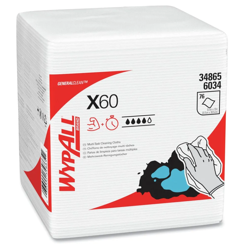 (76/Box, 12 Boxes/Carton) X60 12.5 in. x 13 in. 1/4 Fold General Clean Cloths – White – 34865