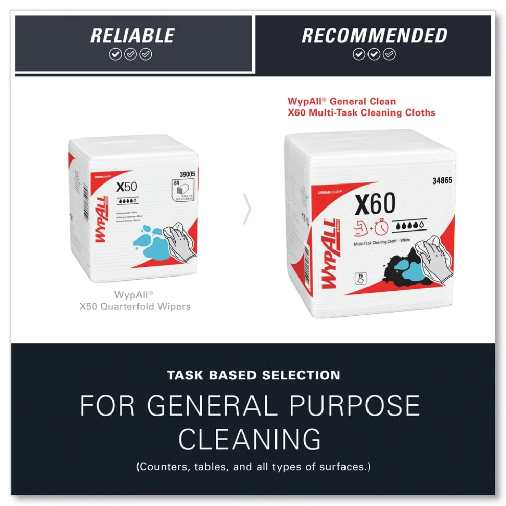 WypAll 34865 X60 12.5 in. x 13 in. 1/4 Fold General Clean Cloths – White (76/Box, 12 Boxes/Carton)