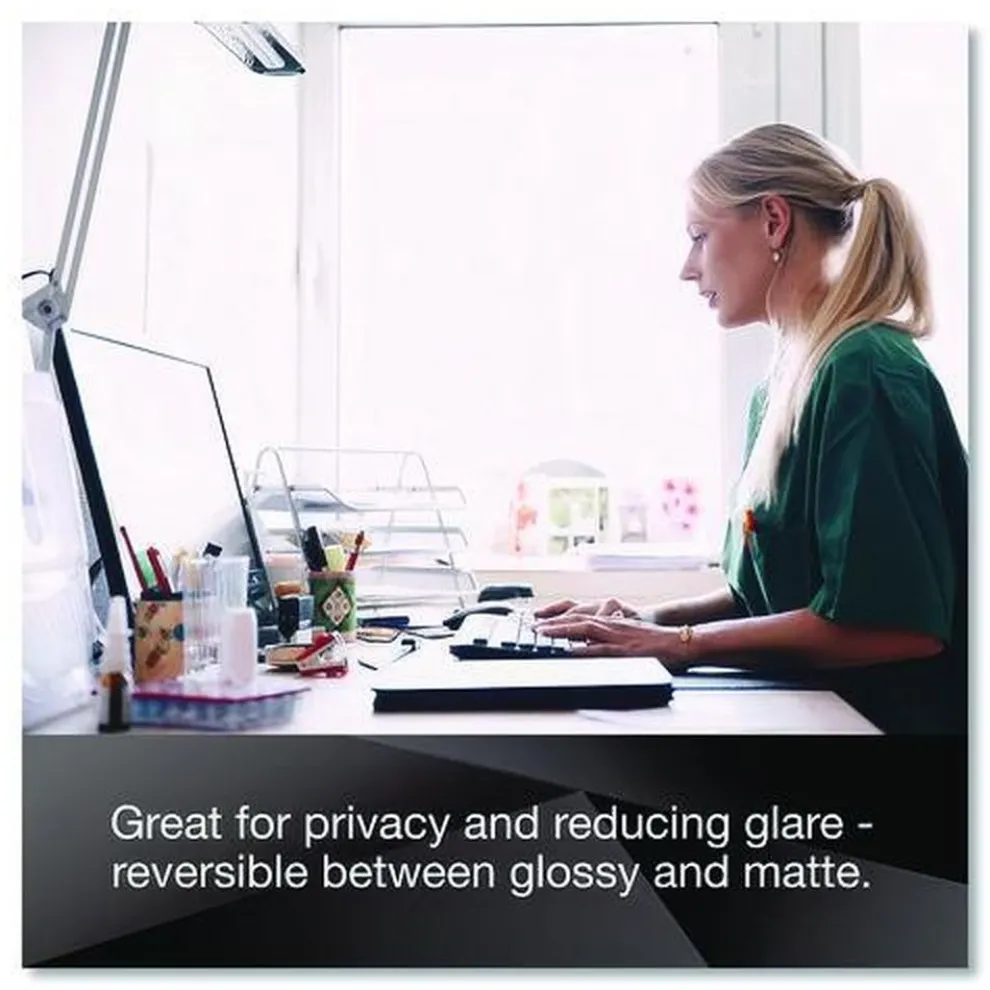 3M Privacy Filters provide world-class black out privacy from side views outside the 60 Degree viewing angle, while creating an excellent viewing experience from straight on views. Designed for full screen monitors with flat glass displays, these Privacy Filters are reversible between a glossy side and a glare-reducing matte side that helps reduce reflections and hide fingerprints, so you can enjoy pristine image clarity. The COMPLY Magnetic Attach allows you to quick-click between world-class privacy and screen sharing thanks to ultra strong magnets that click the filter securely into place.