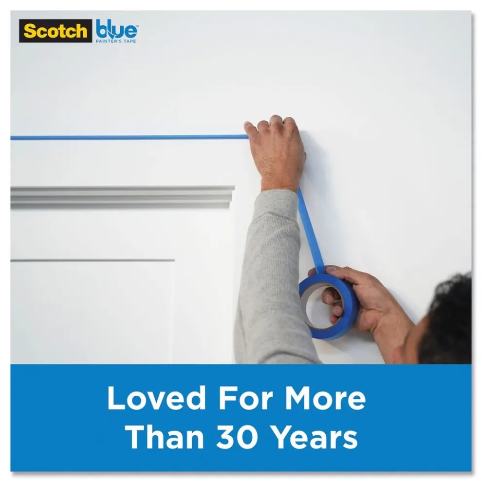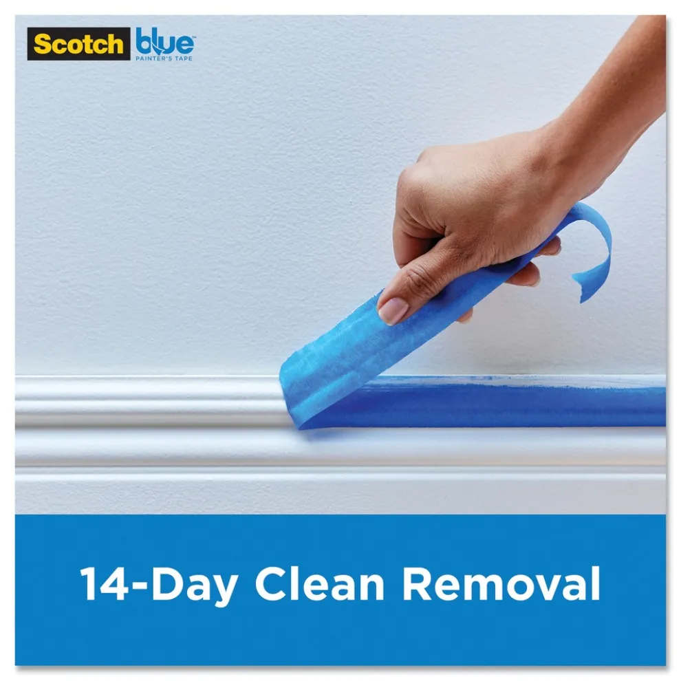 ScotchBlue Original Painter’s Tape is the tape that DIY painter’s and pros have loved for more than 30 years. Whether you’re protecting your wood trim, painted walls, tile floor, or glass windows, this versatile multi-surface tape can stay on surfaces for up to 14 days and then be removed easily without leaving any sticky residue behind. Help protect your surfaces while bringing your creative vision to life with the help of ScotchBlue Original Painter’s Tape. For great paint results make sure the surface is clean, dry and dust-free so that the tape sticks properly. Next, apply the tape onto the surface while pressing down firmly as you go. And lastly, let the tape set for about 30 to 60 minutes before painting. Wait until the paint is dry to the touch before removing the tape. Lift the tape up by slowly pulling it back on itself, then removing at a 45-degree angle.