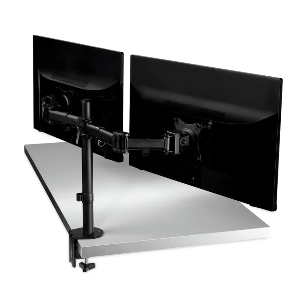 Sturdy steel construction holds two monitors up to 28.5 in. width and 20 lbs. each