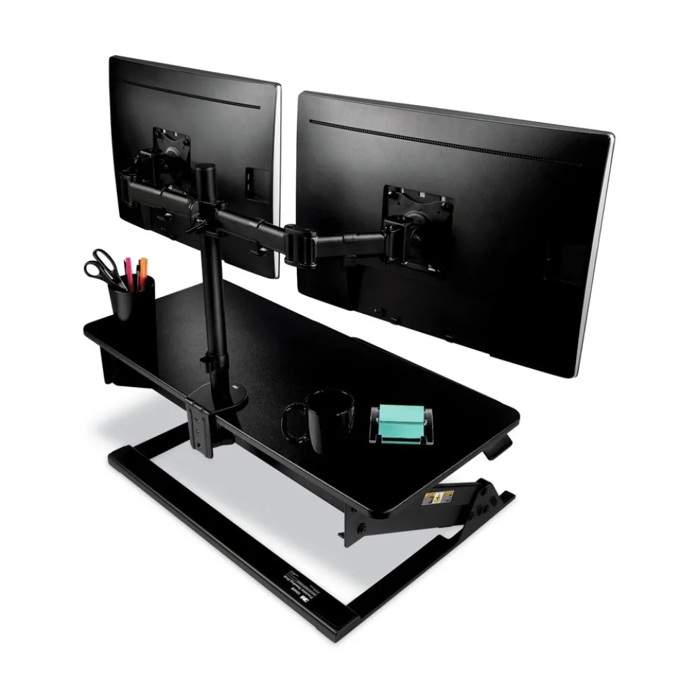 Free up valuable desk space and bring your monitor to a comfortable viewing height and distance while sitting or standing
