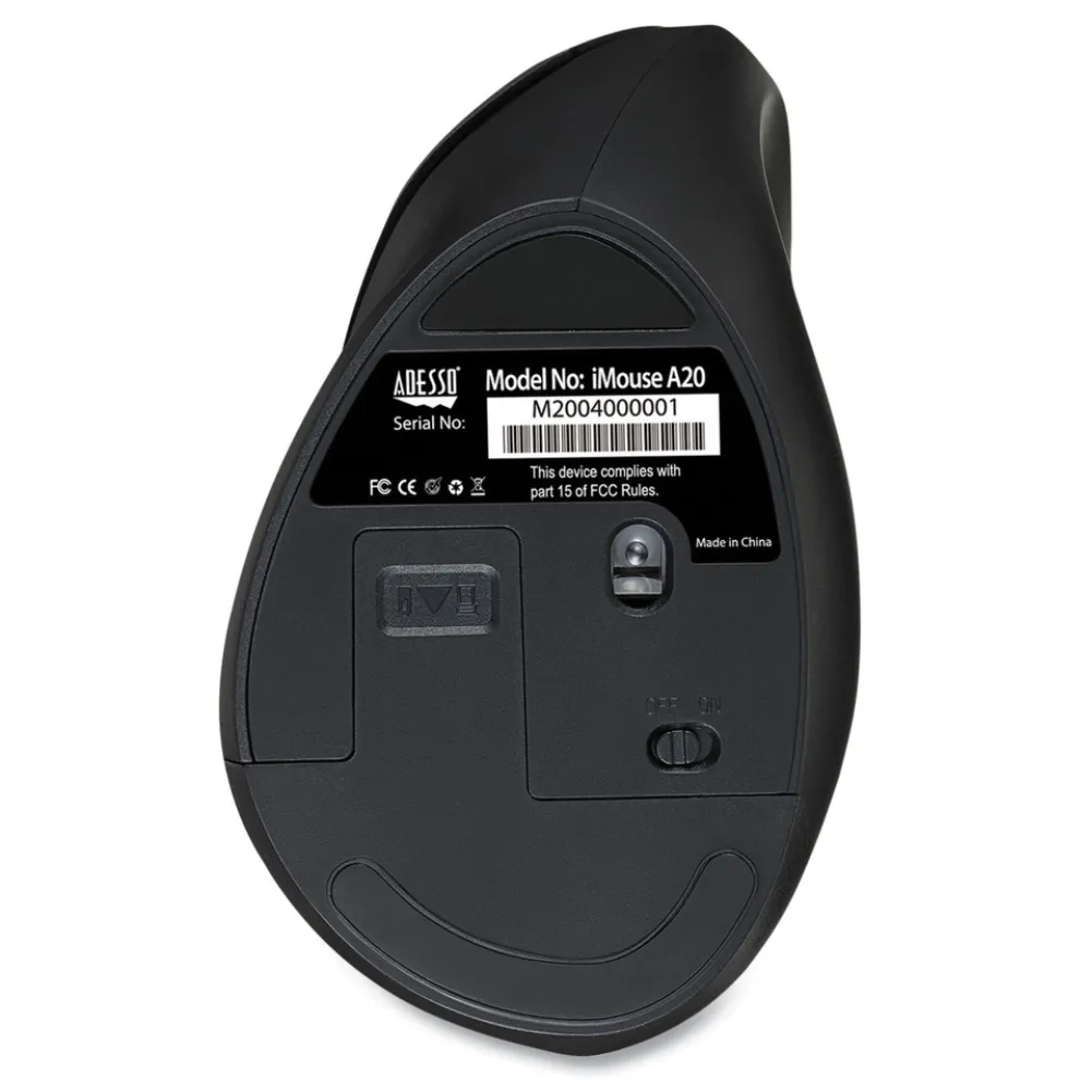 Adesso A20 iMouse A20 2.4 GHz Frequency 33 ft. Wireless Range Right Hand Use Antimicrobial Vertical Wireless Mouse – Black/Granite