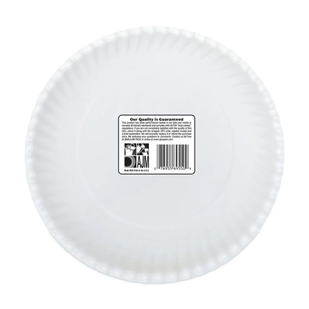 AJM Packaging Corporation AJM OH9AJBXWH 9 in. Diameter Original Heavyweights Paper Plates – White (120/Pack, 8 Packs/Carton)