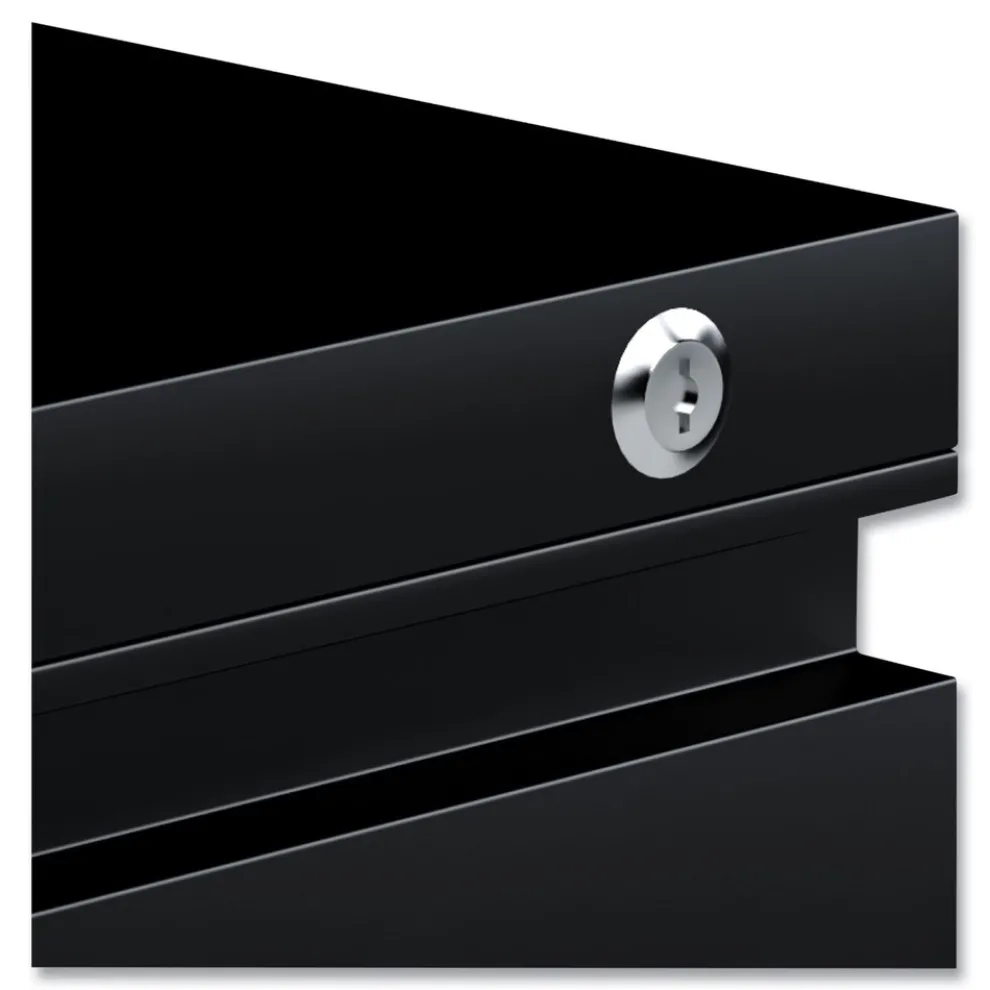 Get organized with a high-sided file cabinet with drawers that accommodate letter or legal-sized hanging files. Steel ball bearing telescoping slide suspension helps drawers glide smoothly and with ease. The counterweight prevents tipping. Equipped with 4 casters, 2 locking, 2 non-locking. Full-length pull permits easy opening. Single key core removable lock with 2 keys. Durable powder coated finish helps prevent scratches.