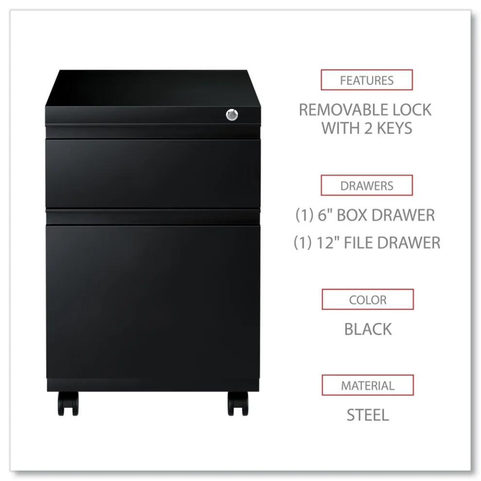 Alera ALEPBBFBL 14.96 in. x 19.29 in. x 21.65 in. 2-Drawers: Box/File Legal/Letter Left or Right File Pedestal with Full-Length Pull – Black