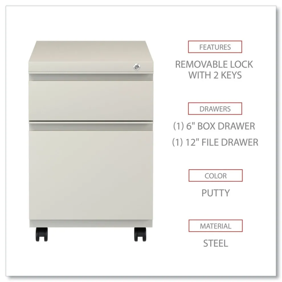 Alera ALEPBBFPY 14.96 in. x 19.29 in. x 21.65 in. 2-Drawers: Box/File Legal/Letter Left or Right File Pedestal with Full-Length Pull – Putty
