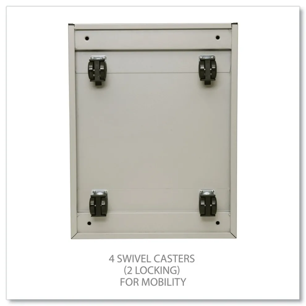 Get organized with a high-sided file cabinet with drawers that accommodate letter or legal-sized hanging files. Steel ball bearing telescoping slide suspension helps drawers glide smoothly and with ease. The counterweight prevents tipping. Equipped with 4 casters, 2 locking, 2 non-locking. Full-length pull permits easy opening. Single key core removable lock with 2 keys. Durable powder coated finish helps prevent scratches.