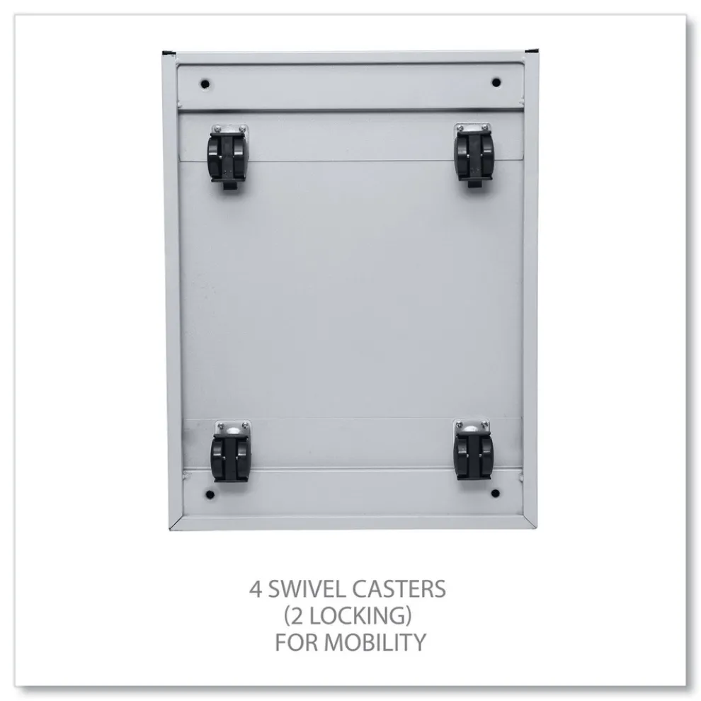 Get organized with a high-sided file cabinet with drawers that accommodate letter or legal-sized hanging files. Steel ball bearing telescoping slide suspension helps drawers glide smoothly and with ease. The counterweight prevents tipping. Equipped with 4 casters, 2 locking, 2 non-locking. Full-length pull permits easy opening. Single key core removable lock with 2 keys. Durable powder coated finish helps prevent scratches.