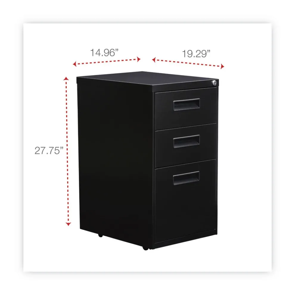 14.96 in. x 19.29 in. x 27.75 in. 3-Drawers: Box/Box/File Legal/Letter Left or Right File Pedestal – Black – PABBFBL