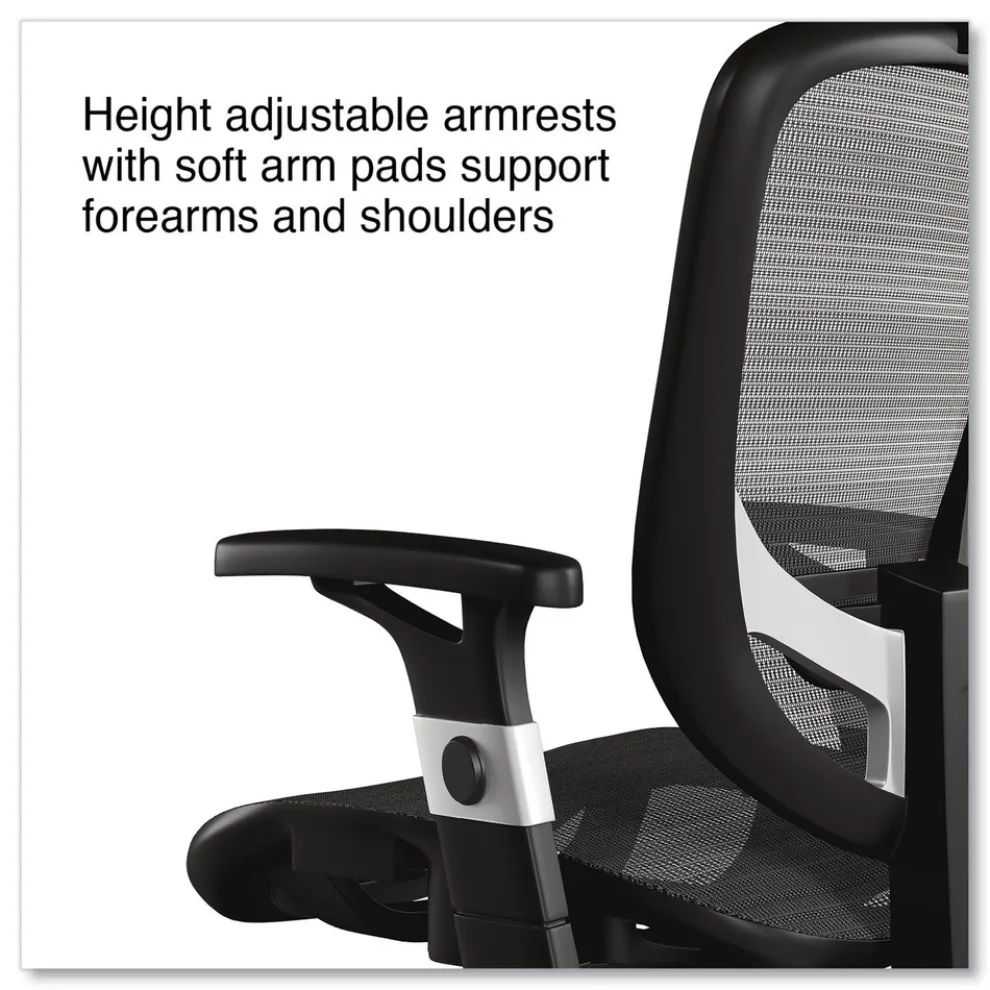 Elevate your workspace with the Alera Minerva Mesh Task Chair, designed for both comfort and productivity. With adjustable armrests and seat height, you can customize your support for a personalized experience. The breathable mesh back promotes airflow, keeping you cool during long hours. Easily adjust the recline resistance using the tension knob, and secure your preferred seating angle with the upright tilt lock. The ergonomic design, coupled with adjustable lumbar support, offers stability and comfort, while the 5-star base with casters ensures effortless mobility. Additionally, the adjustable headrest provides enhanced neck support. Enjoy a more productive and comfortable workday, backed by guaranteed quality and value.