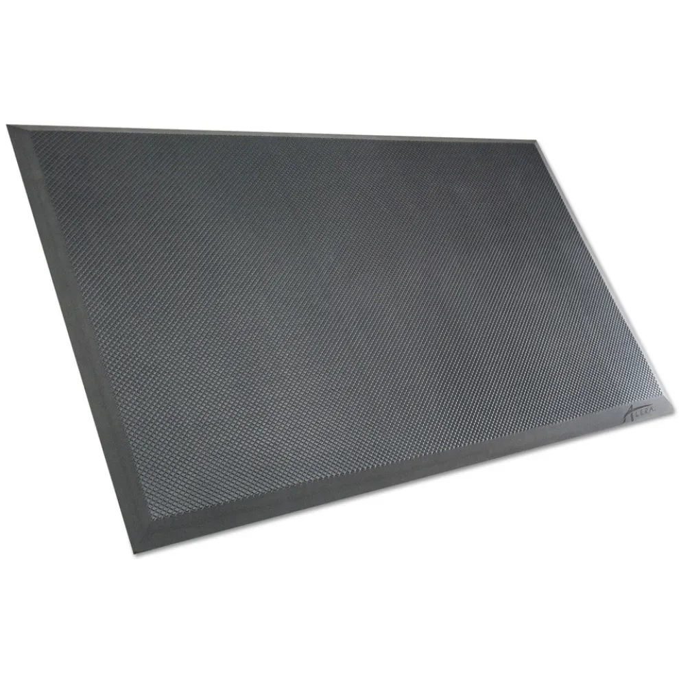 Encourage proper ergonomics and reduce fatigue with this cushioned standing mat. Beveled edge lays flat on the floor to reduce trip hazards. Rubber and vinyl construction ensures long-lasting resiliency and cushioning. Ideal for use at sit-to-stand workstations, service counters, breakrooms, or wherever standing is required. Easy to clean surface with a molded grid pattern to catch dirt and spills. Combine with Alera AdaptivErgo Height Adjustable Tables or Alera AdaptivErgo Lifting desks for even more ergonomic benefits with your sit-to-stand workstations.
