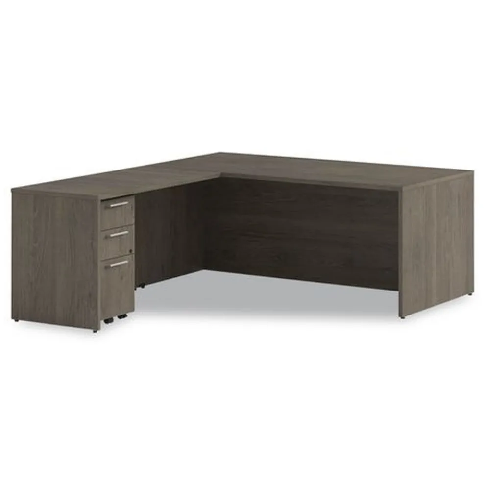 This desk shell is a centerpiece to your office setup, designed to pair seamlessly with returns, pedestal or credenzas for creating efficient L-shaped or U-shaped workstation configurations. Made from durable particleboard, this extension features a band edge design that adds strength and durability to its construction. The surface is finished with high-quality laminate that not only offers a sleek, professional look but also provides excellent resistance to impacts and burns, ensuring long-lasting use in busy office environments. Equipped with adjustable glides that allow for easy leveling on uneven surfaces, ensuring stability and comfort.