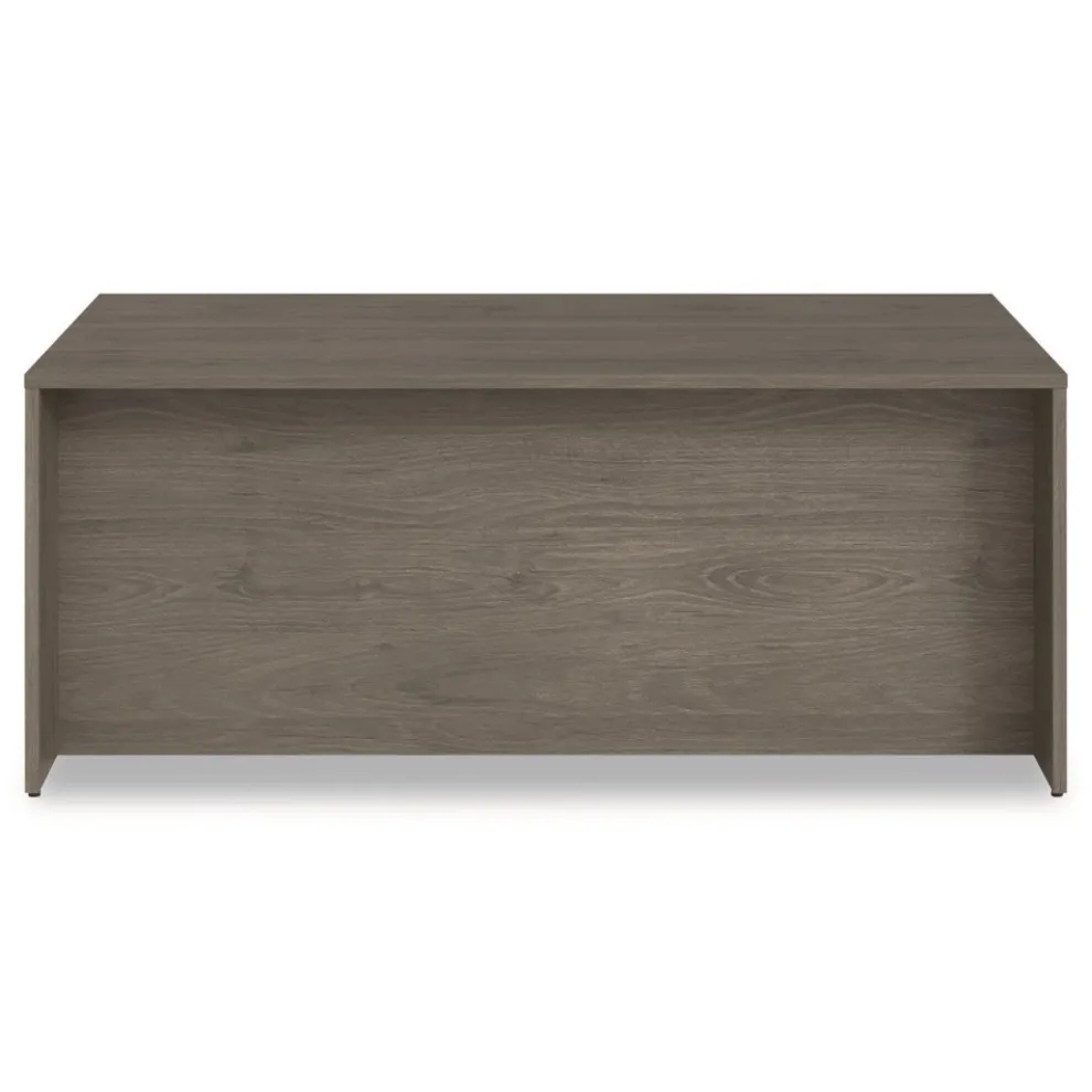 A thoughtfully designed piece that offers both functionality and style for any office environment. Equipped with two pedestals, this desk maximizes storage space to keep your workspace organized and clutter-free. These drawers offer versatile storage solutions for your office supplies, files, and personal items, allowing you to access what you need with ease. The double-pedestal design offers sturdy support, while the laser edge band construction enhances durability for long-lasting use. Crafted from particleboard, the desk is finished with a rich laminate and thermofused melamine (TFM), combining both strength and aesthetics. The premium laminate is resistant to burns and impacts, making this desk ideal for a high-traffic office setting. Its surface is designed to withstand the daily wear and tear of a busy work environment, ensuring that it maintains its sleek appearance over time. To enhance functionality, the desk includes two grommets for convenient cable management, allowing you to keep wires and cords organized and out of the way. Additionally, adjustable glides provide stability on uneven flooring, ensuring a level surface no matter where the desk is placed.