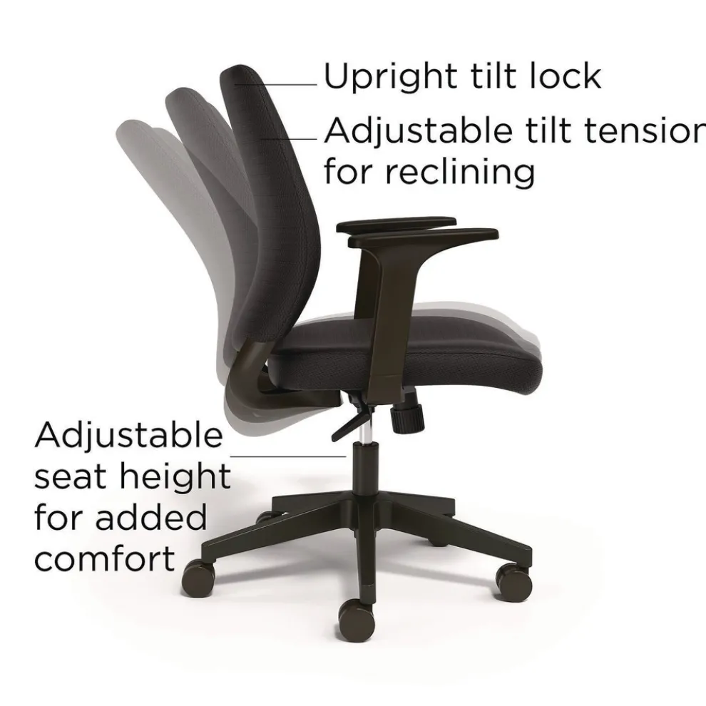 17.13 in. to 20.83 in. Seat Height Supports Up to 275 lbs. Wessex Ergonomic Fabric Task Chair – Black – WX4217