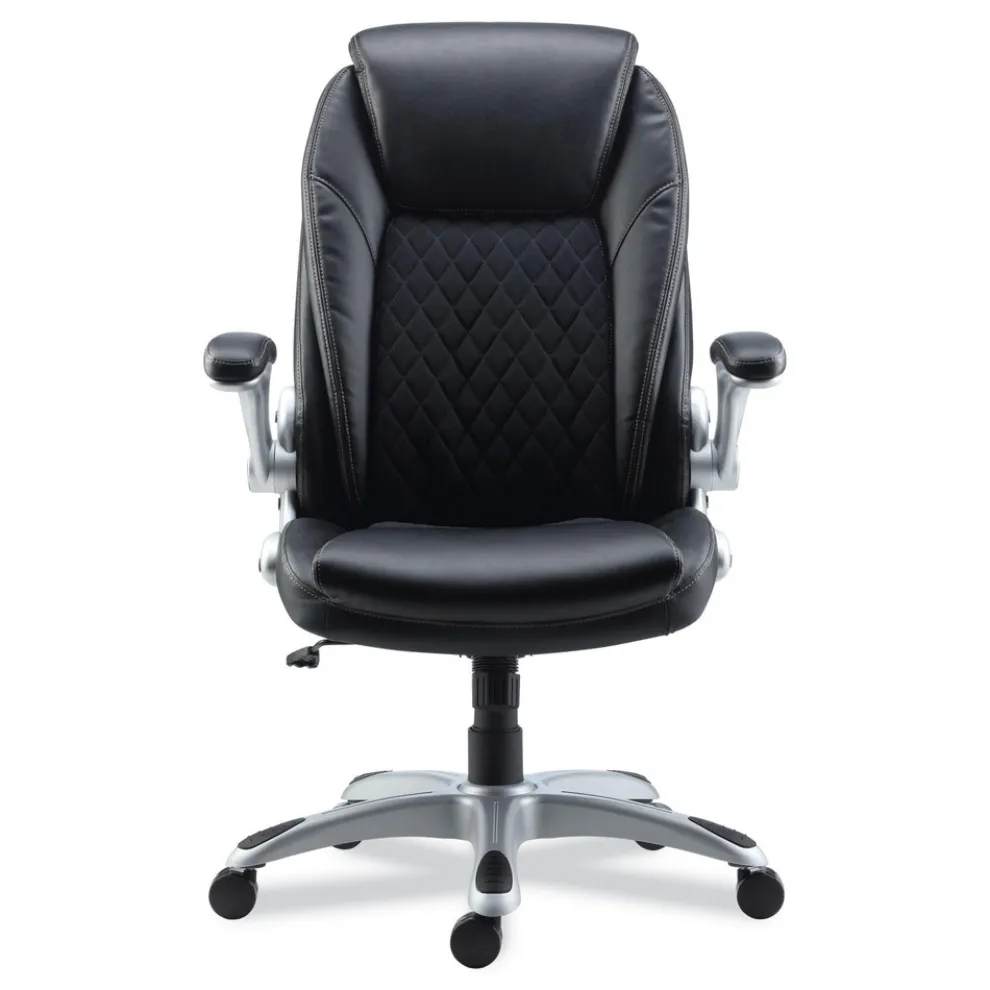 Settle into this Leithen bonded leather and quilted fabric midback chair for added comfort throughout the workday. Designed for luxurious comfort, it supports your head, neck, back, and shoulders with height-adjustable, padded arms and built-in recliner. Further customize your working position with adjustable seat height and locking tilt tension. Mobile design features a stable, five-star base with rolling casters which work on carpet or hard floors. Supports up to 275 lbs. Assembly required.