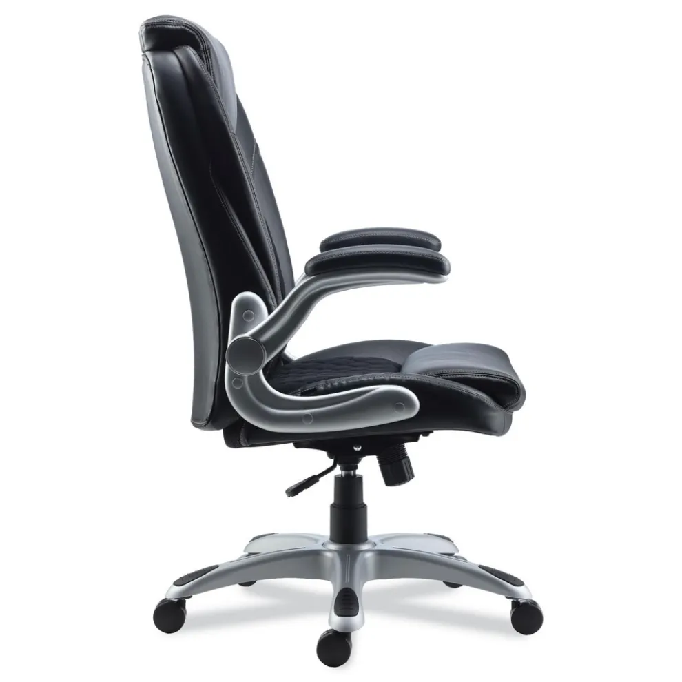 Alera ALELT4249 Leithen Bonded Leather Midback Chair Supports Up to 275 lbs. – Black/Silver