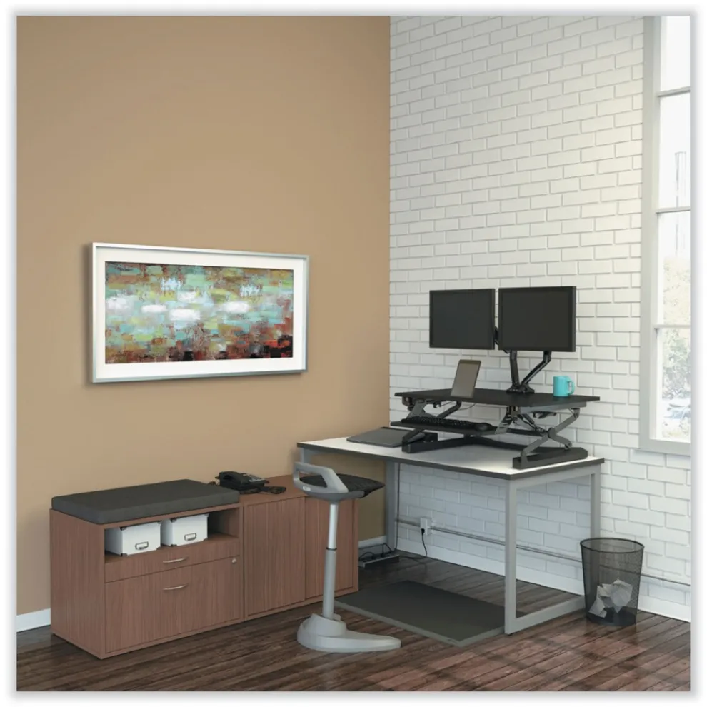 Sturdy file cabinet holds letter or legal files and is great for storage or as a low credenza with your desk. Can be used as a return to expand your desk space to create “L” or “U” shaped desk configurations. Coordinating laminates for use with Alera Valencia, Sedina, or Open Office Desk Series. Three storage spaces including lateral file drawer, pencil drawer, and open storage. Full extension, ball-bearing slides for easy access to everything. Configurable left or right-handed. Durable woodgrain laminate is scratch, dent, and water-resistant. Leveling glides compensate for uneven floors. Two, fold-away safety keys. Two Drawers.
