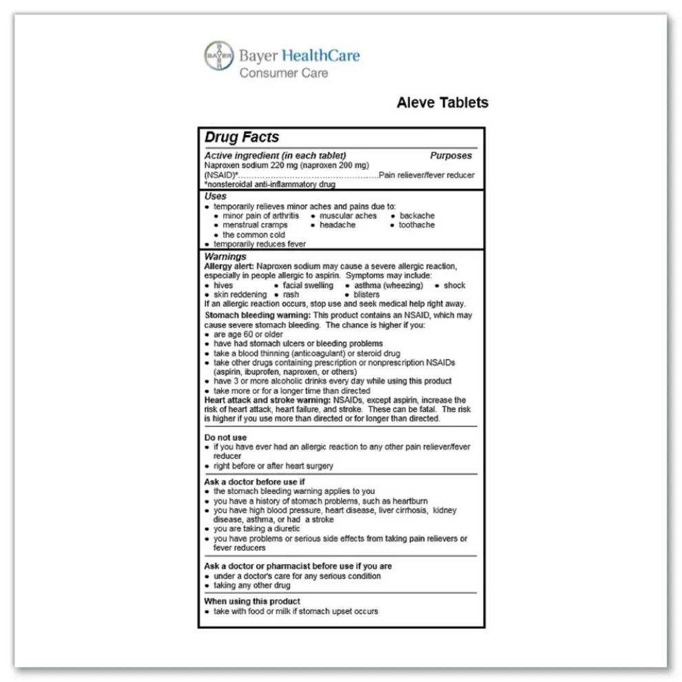 Aleve 51030 220 milligrams Refill Pack Naproxin Tablets (30/Box)