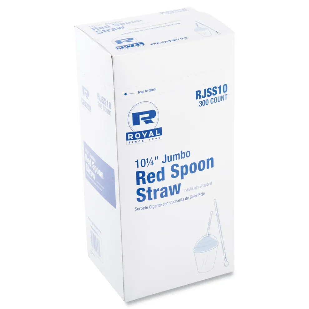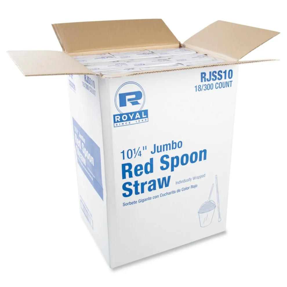 (5400/Carton) 10.25 in. Plastic Jumbo Spoon Straw – Red – RJSS10