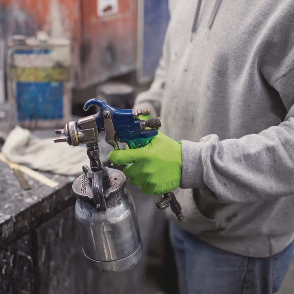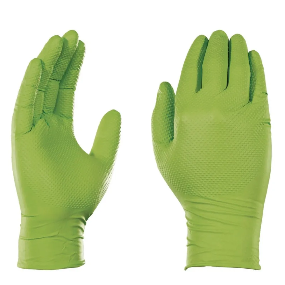 Gloveworks by AMMEX Heavy-Duty Industrial Nitrile Gloves stand up to the toughest jobs. They feature Raised Diamond Texture (RDT) which creates 60% more surface area for an exceptional liquid channeling grip. RDT provides a comfortable fit: fewer contact points with the skin increase airflow and reduce sweating vs. non-textured gloves.