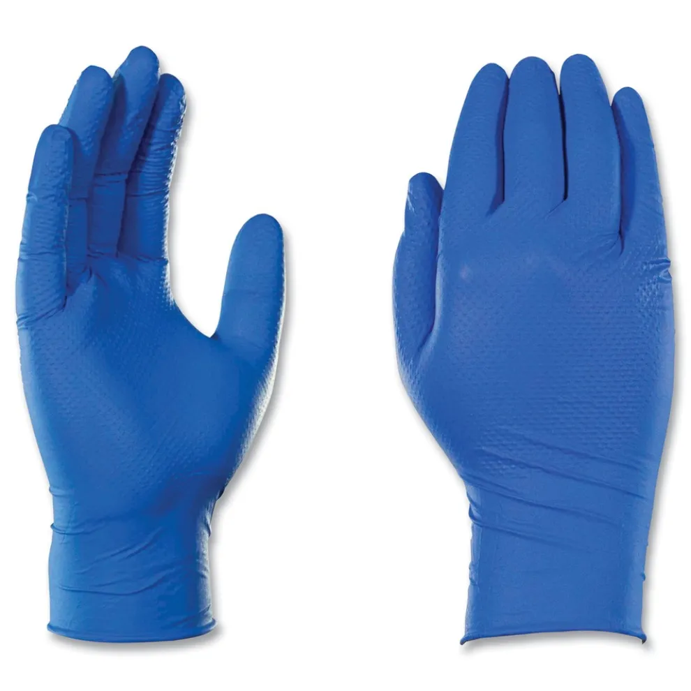 Gloveworks by AMMEX Heavy-Duty Industrial Nitrile Gloves stand up to the toughest jobs. They feature Raised Diamond Texture (RDT) which creates 60 percent more surface area for an exceptional liquid channeling grip. RDT provides a comfortable fit: fewer contact points with the skin increase airflow and reduce sweating vs. non-textured gloves.