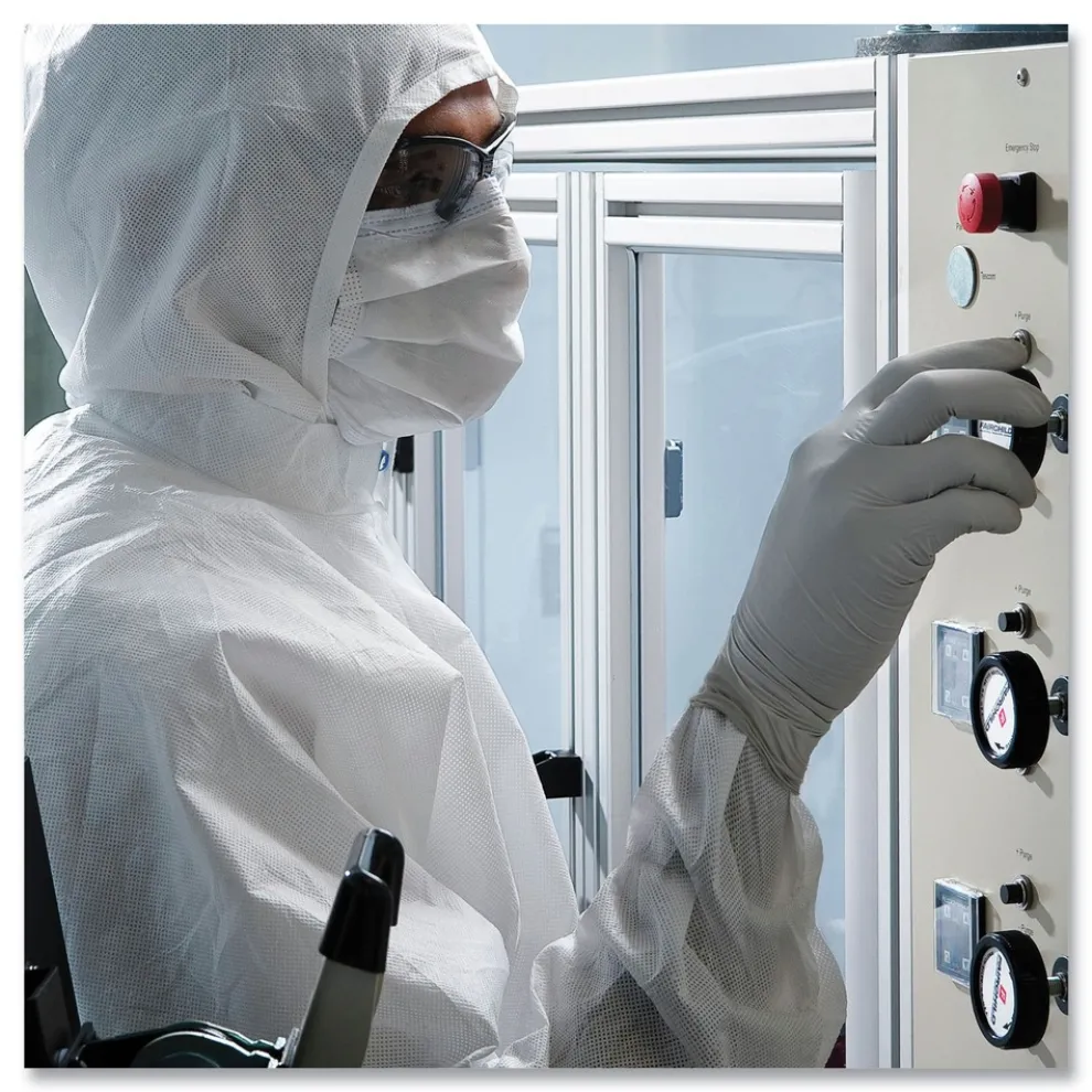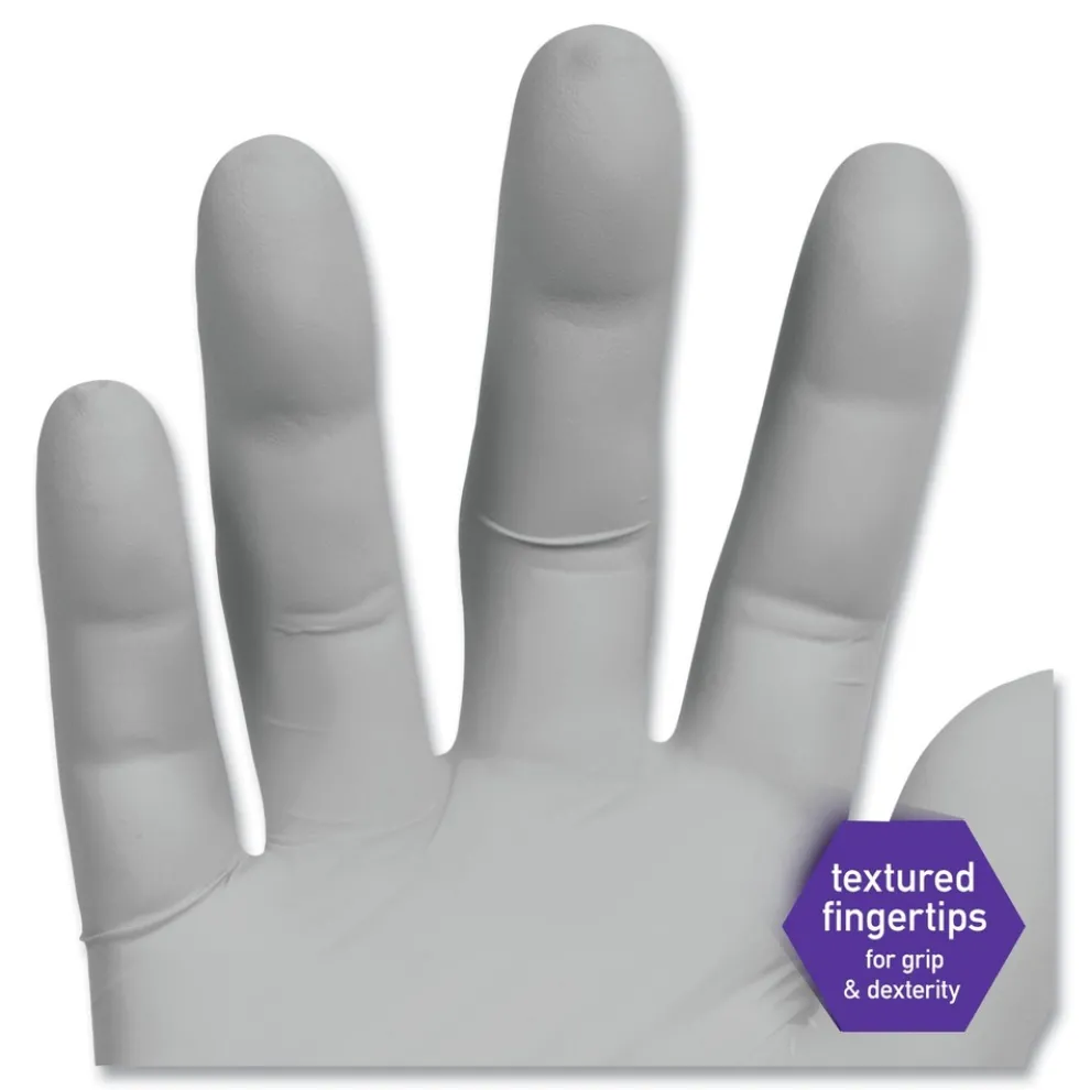 A low cost nitrile glove combining the sensitivity of latex with the protection and strength of nitrile. The thin mil gray gloves are 9.5 in. long, ambidextrous, powder-free, with beaded cuffs and textured fingertips. They are not made with natural rubber latex.
