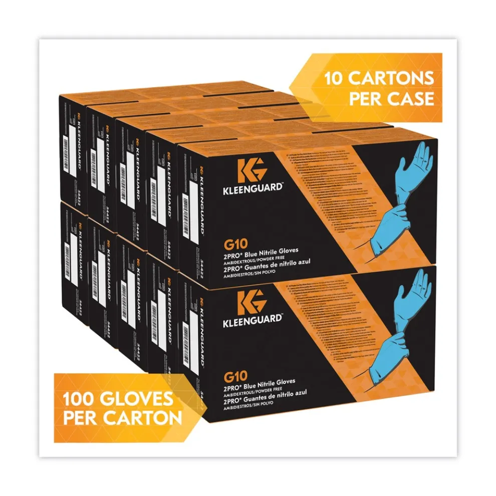 (100/Box, 10 Boxes/Carton) 6 mil Thick 9.5 in. Long Powder-Free G10 2PRO Nitrile Gloves – Medium, Blue – 54422CT