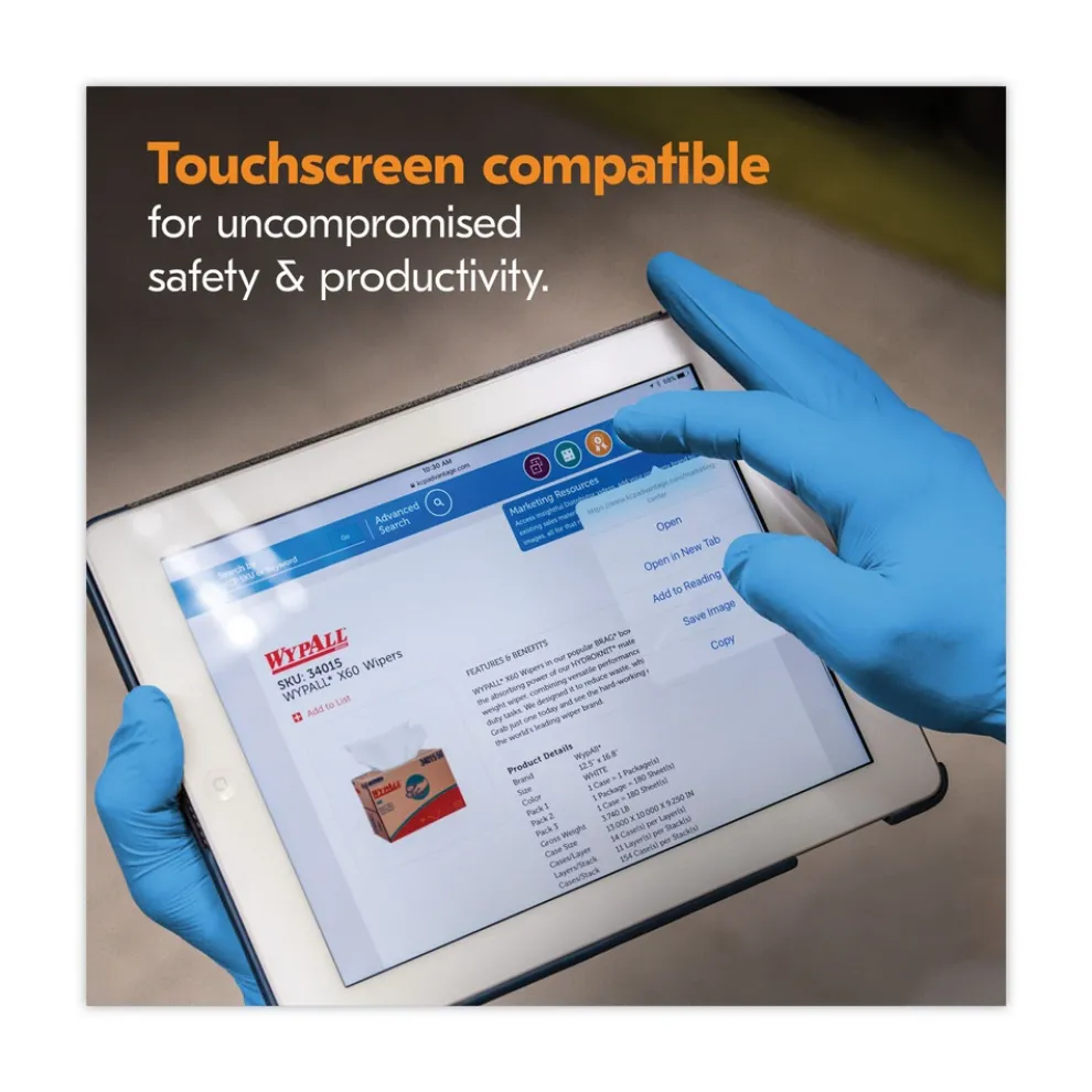 Ambidextrous, powder-free, touchscreen compatible gloves; textured fingertips give users dexterity when performing delicate tasks; not made with natural rubber latex