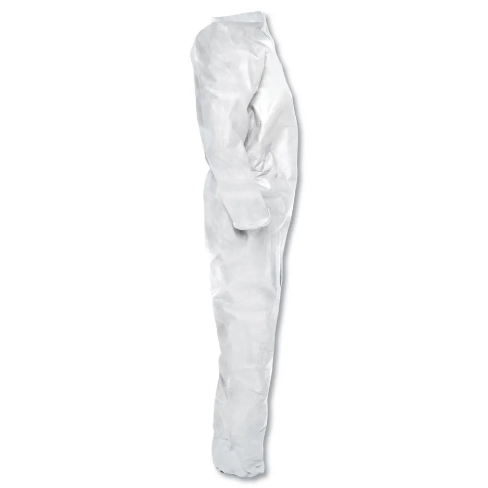 KleenGuard Personal Protective Equipment (PPE) enables rather than inhibits allowing for maximum productivity and safety for you and your employees. KleenGuard A20 Breathable Particle Protection Coveralls are designed to move with you and your employees while protecting against hazardous and non-hazardous dust. These protective garments offer superior particle holdout coupled with unmatched comfort attributes. The A20 fabric is comprised of 5 layers of stacked barrier protection (SMMMS) against hazardous particles. Features to provide more protection include the seamless front (for primary exposure area), 1 in. zipper flap, an Elastic-Back and elastic wrists and ankles. They feature Reflex design, which offers excellent fit and freedom of movement. The seamless front provides more protection to the primary exposure area. They are a popular choice for dusty environments such as laboratories and remediation, as well as pesticide applications and as decontamination modesty garments. Making the right Personal Protection choice is difficult. Perform with distinction with KleenGuard Personal Protective Equipment (PPE).