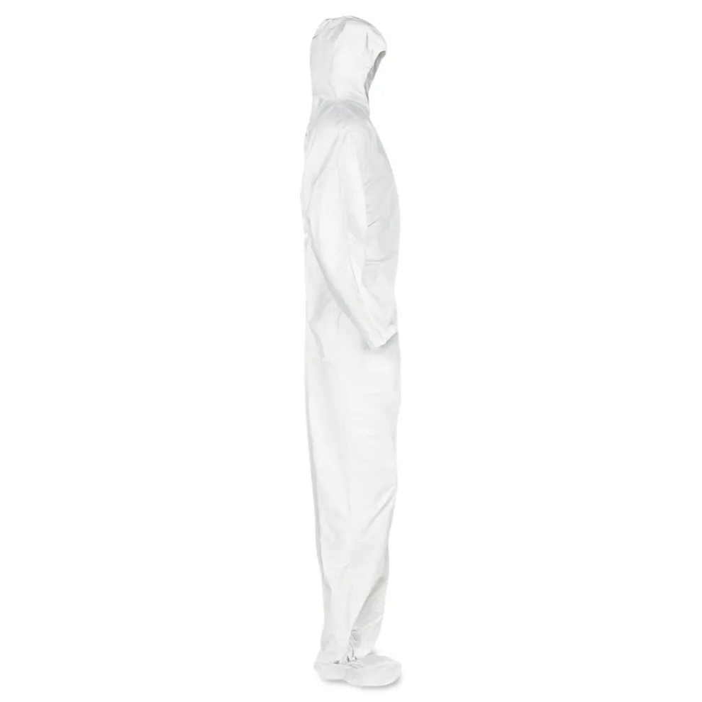 Ansell KCC49123 A20 Hood, Boots, and Elastic-Back Breathable Particle Protection Coveralls – Large, White (24/Carton)