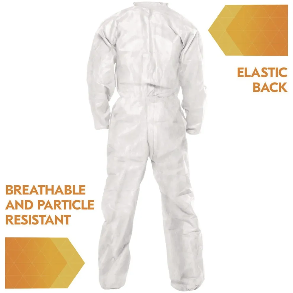 Ansell KCC 49103 A20 Zip Front, Elastic-Back, Wrists, and Ankles Breathable Particle Protection Coveralls – Large, White (24/Carton)