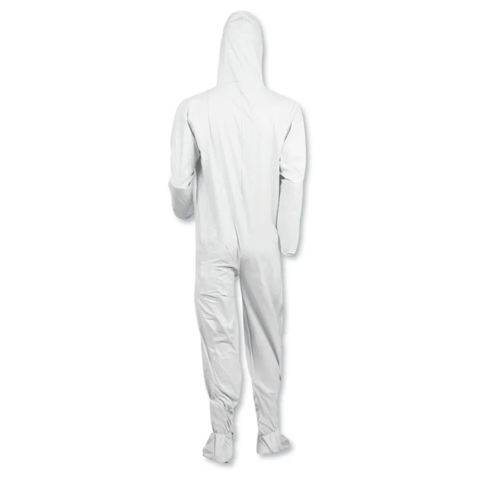 Ansell 44333 A40 Elastic-Cuff Ankle, Hood, and Boot Coveralls – Large, White (25/Carton)