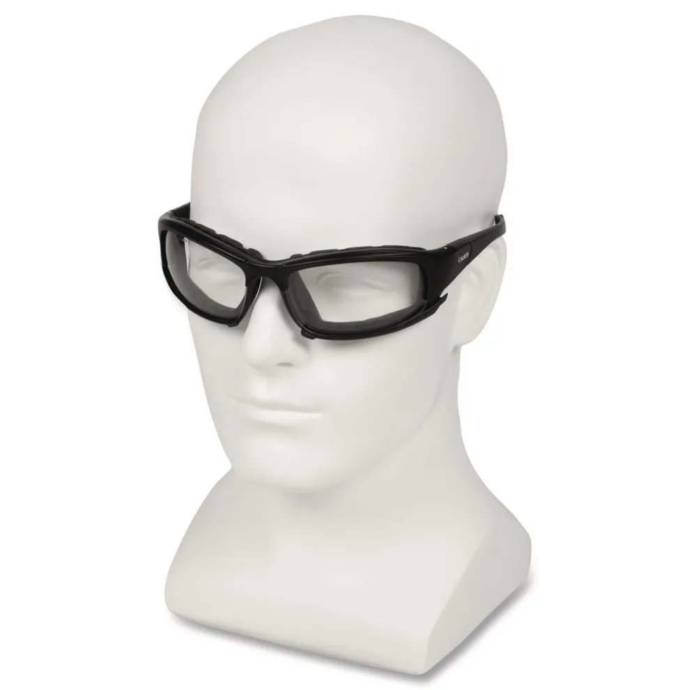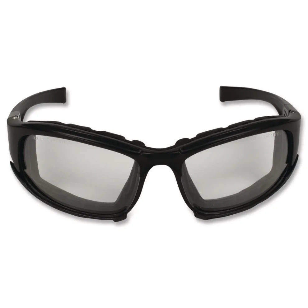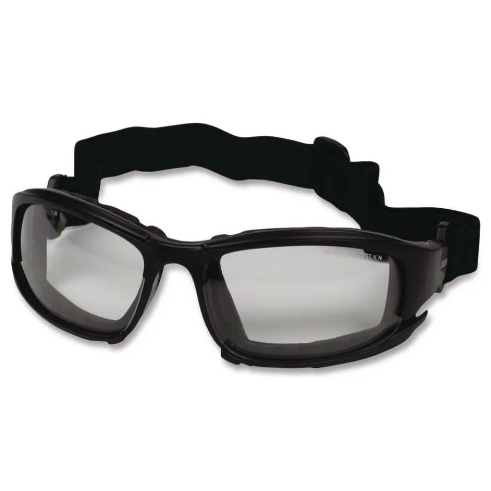 KleenGuard Calico Safety Eyewear offers excellent wraparound protection in a stylish, lightweight, comfortable design. The temples are conveniently interchangeable with a head strap (included), so you can transform your glasses into goggles if you’re looking for a closer fit. Removable foam lining and cushioned brow bar help seal out dust and debris while ensuring a comfortable fit. Impact-resistant polycarbonate lens delivers 99.9% UV protection to reduce eye strain and prevent eye damage. Calico safety glasses are ideal for use in dirty manufacturing, transportation and metal-working scenarios; and when the temples are replaced with the included head strap, they also double as excellent motorcycle goggles.