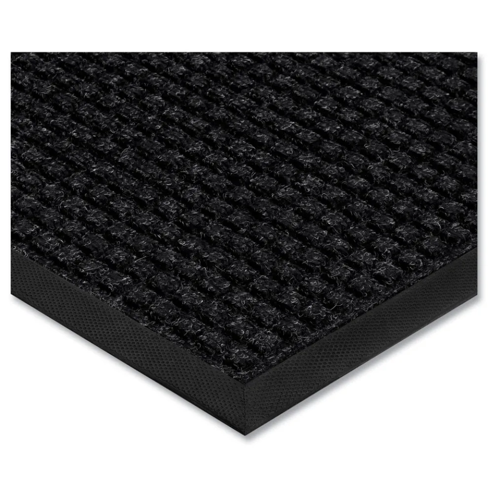 Classic commercial mat with a crush-resistant surface has been re-engineered with added weight for extra durability. Long-lasting, phthalate-free rubber backing and border keep moisture on the mat and away from indoor flooring. The polypropylene needlepunch carpeted surface is fade-resistant, holds up to 1.5 gal. of water per square yard, and dries quickly. Manufactured with no underside grippers to provide more area-to-surface contact with the floor. Weighing about 127 oz. per square yard, the mat is meant to stay in place. Ideal for use in interior or exterior high-traffic areas such as commercial buildings, hotels, restaurants, schools, businesses and homes. Easy to clean: simply shake, sweep, or hose off.