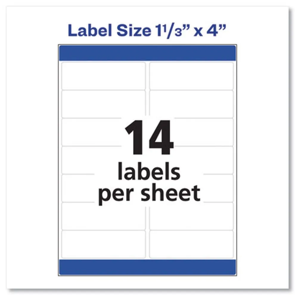 Avery 05962 1.33 in. x 4 in. Easy Peel Address Labels with Sure Feed Technology for Laser Printers – White (14/Sheet, 250 Sheets/Box)