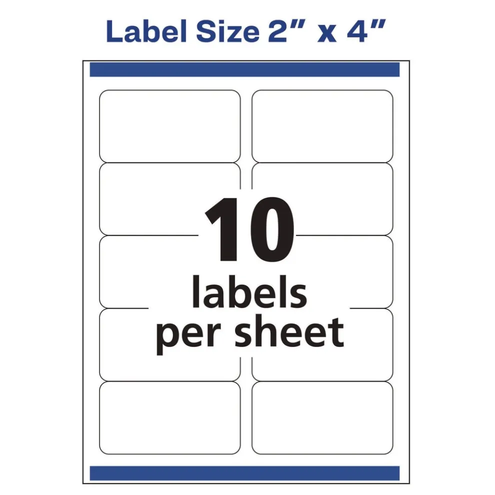 Avery 95945 2 in. x 4 in. Shipping Labels-Bulk Packs for Inkjet/Laser Printers – White (10/Sheet, 250 Sheets/Box)