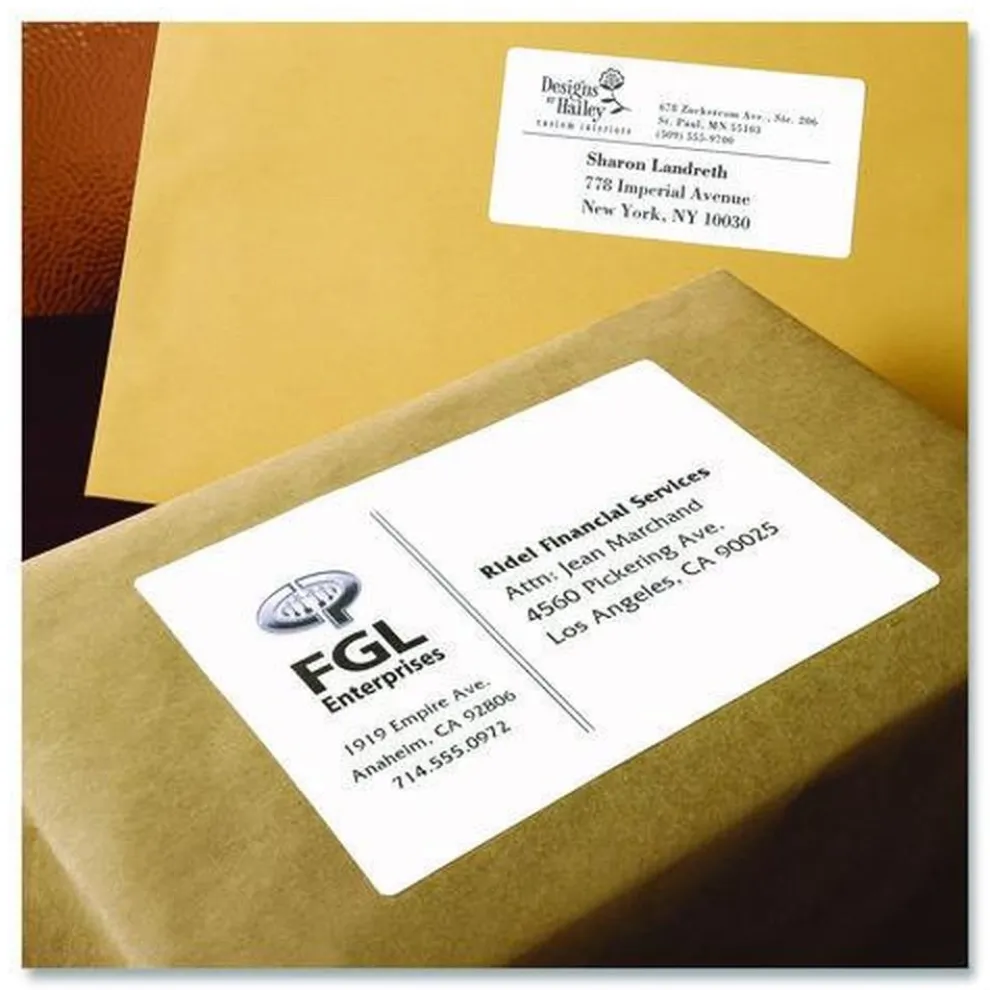 Create professional-looking labels quickly. Bright white labels for sharper print quality are perfect for creating labels for shipping and organizing. 250 sheet boxes; ideal for large labeling projects. Easy to customize with free templates and designs at Avery Design and Print at avery.com/print. 8-1/2 x 11 sheets for laser or inkjet printers.
