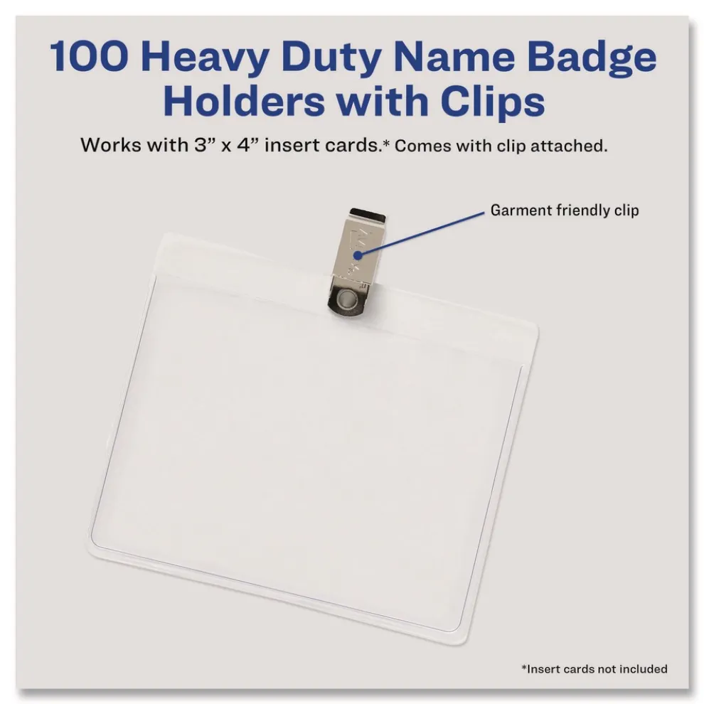 Avery 02923 4 in. x 3 in. Horizontal Heavy-Duty Clip-Style Badge Holders – Clear (100/Box)