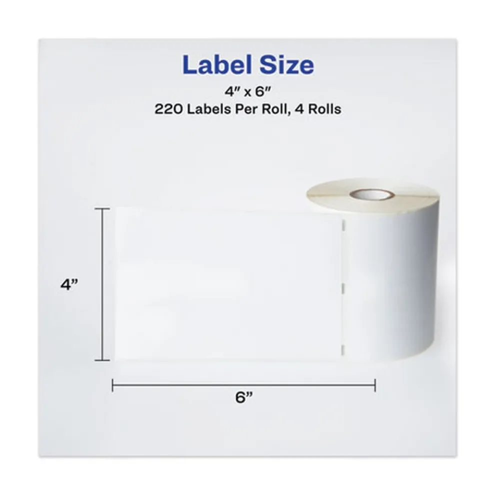 Avery 04157 4 in. x 6 in. Multipurpose Thermal Labels – White (220/Roll, 4 Rolls/Box)