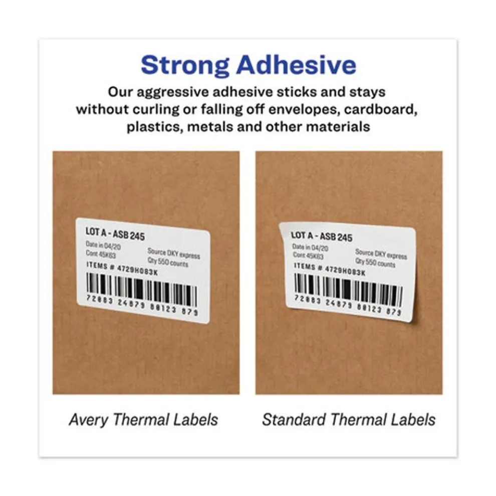 Durable thermal labels are scratch-resistant, smudge-free and resist water, dirt, dust and grease. Compatible with select DYMO, Seiko, Zebra and Pitney Bowes label printers. Packed in a secure bag to protect from light and ensure optimal performance. Permanent adhesive. Roll format with a 1 in. core.