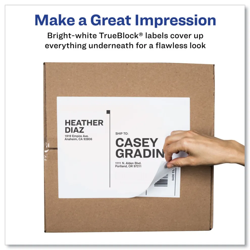 Avery 91201 8.5 in. x 11 in. Shipping Labels with TrueBlock Technology for Inkjet/Laser Printers – White (500/Box)