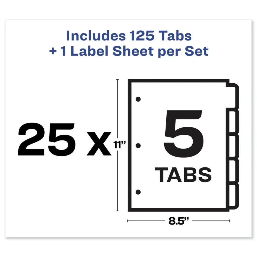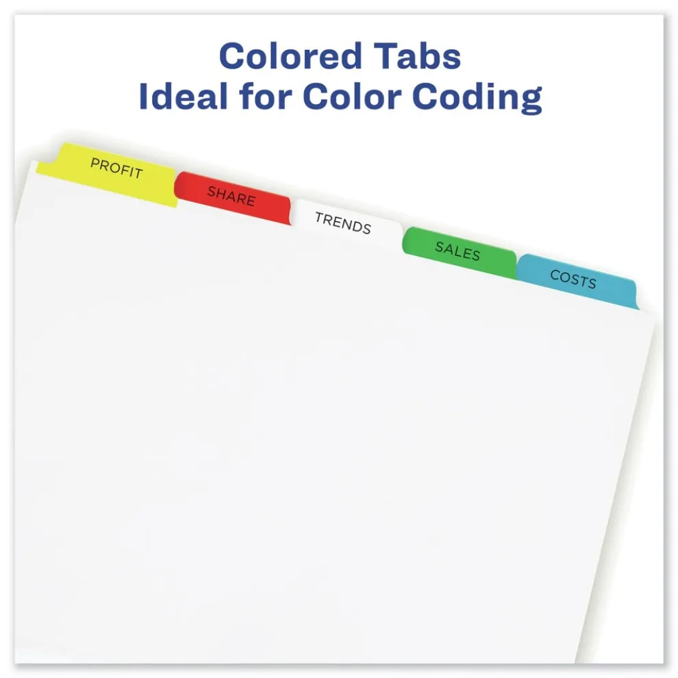 Avery 11423 Index Maker 11 in. x 8.5 in. 5-Tab Traditional Color Print and Apply Clear Label Dividers – Assorted (25/Box)