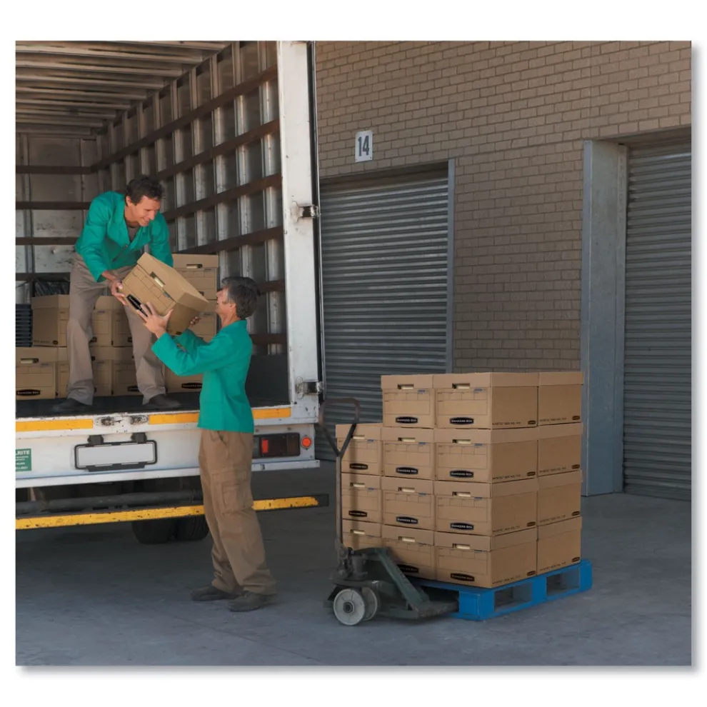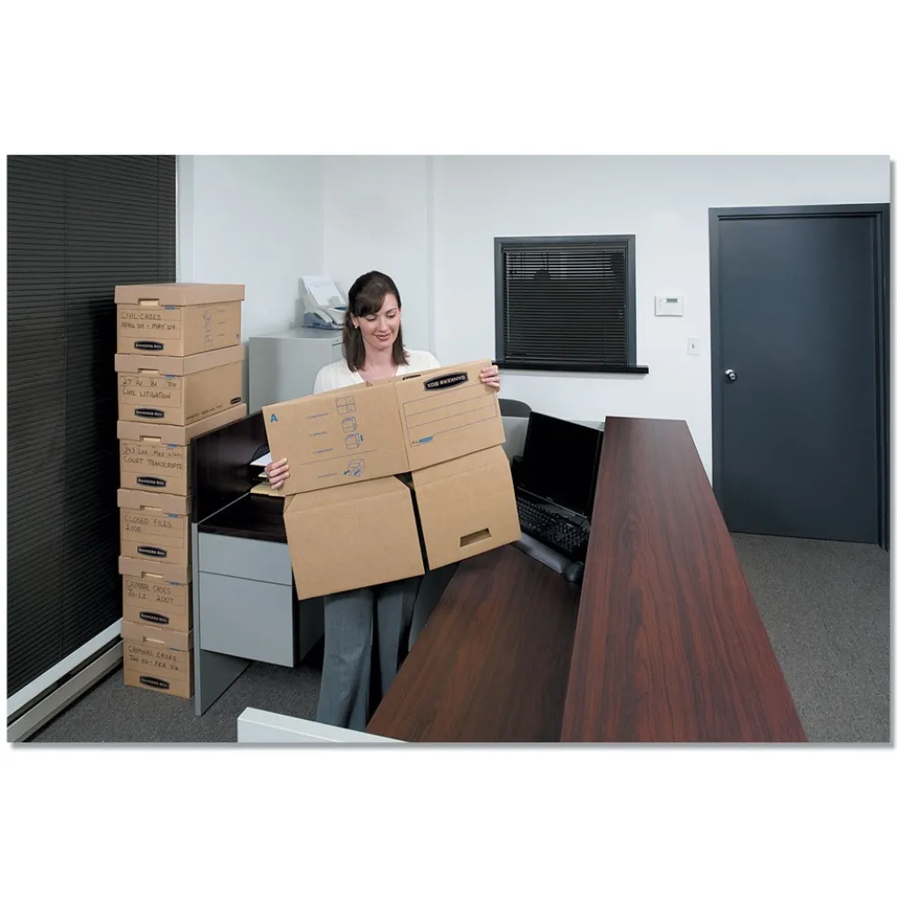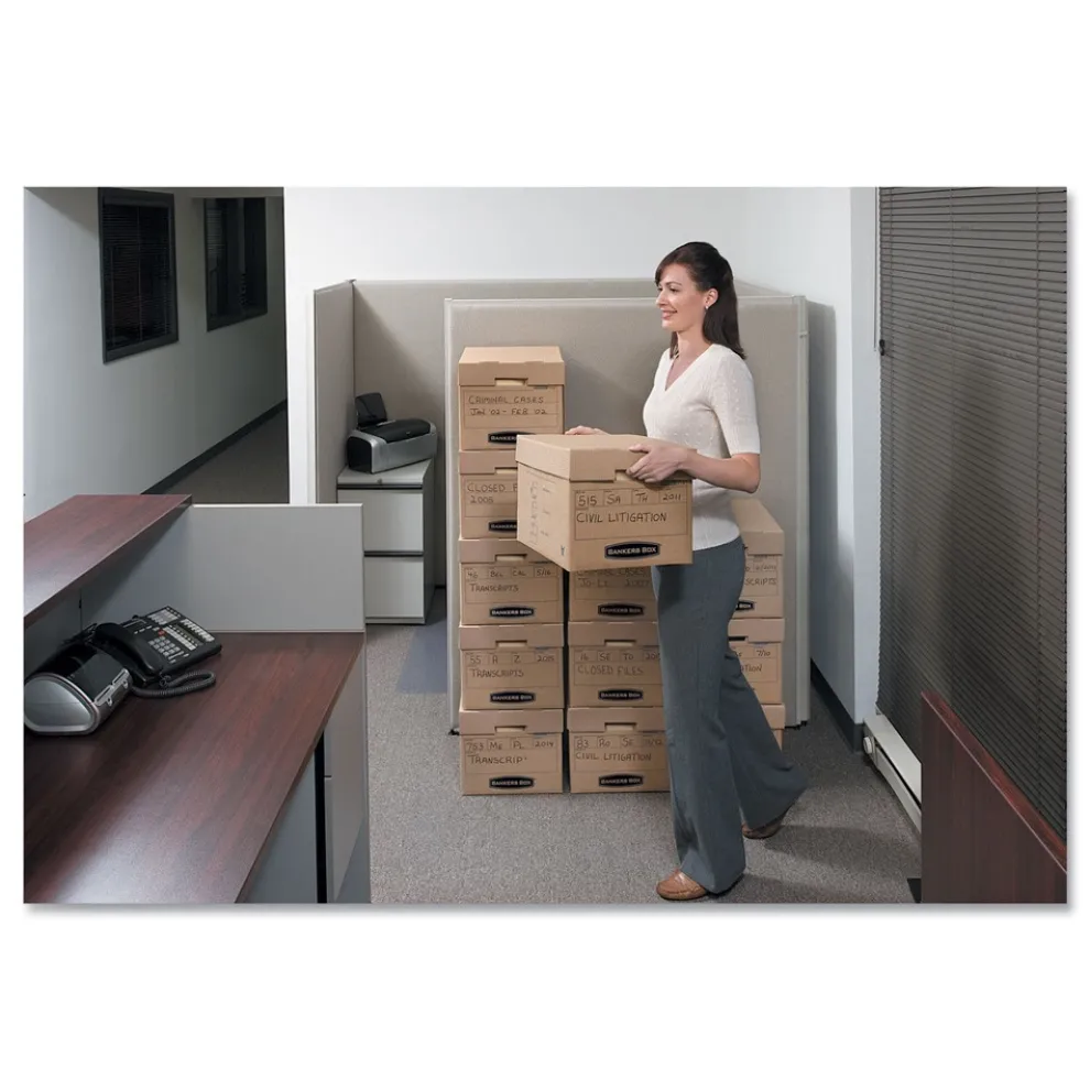 Bankers Box Filing Storage Boxes flip from flat to finished in an instant! Superior stacking strength makes transport easy and minimizes re-boxing. Features secure locking lid, larger labeling area, and a staple-free box design. Made from recycled materials. Perfect for use in the office, home office, school, or wherever you would like to store important papers, documents or any other item.
