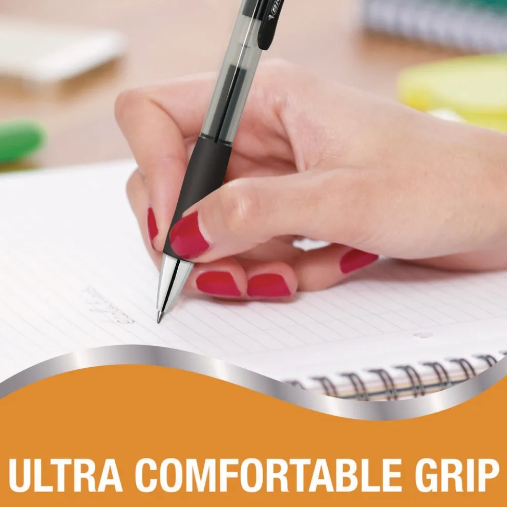 BIC RPGLP4-BLK Gel-ocity Pro 0.7 mm Medium Gel Pen – Black Ink/Translucent Black/Black Barrel (4/Pack)
