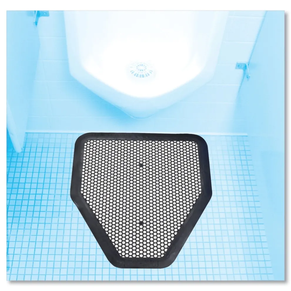 Reduce slipping and tripping with BIG D DEO-GARD DISPOSABLE MATS, while still making restroom maintenance easier and faster, and protecting from cross-contamination. Our innovative design and materials add many benefits to a product that has created excitement throughout the Jan/San market. Constructed with a heavier, high-friction, coefficient material, DEO-GARD DISPOSABLE MATS actually grip to clean, dry floors. No adhesive or velcro is needed because of the over-molding manufacturing technique. With its gripping action, absorbent core, lower profile and warp resistance, this revolutionary mat substantially reduces slipping. The hexagon design grid quickly directs liquids into the absorbent core and allows the end-user to effortlessly see when the mat is soiled and needs replacing. New polymers with increased flexibility conform easily to uneven floor surfaces and allow the soiled mat to easily be folded, rolled or even wadded up for effortless disposal. DEO-GARD DISPOSABLE MATS used under urinals will neutralize odors by catching and quickly absorbing unwanted splashes and drips, protecting the floor from stain, discoloration and uric acid damage with a moisture barrier backing. Cross-contamination is prevented by eliminating the tracking of urine from the restrooms to other parts of the building.