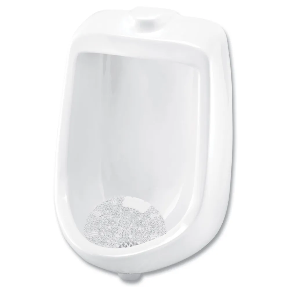 40 percent more fragrance and surface area than a traditional vinyl urinal screen. It is made from a specially engineered copolymer that is impregnated with a powerful organic odor-counteracting compound. It incorporates a two-sided anti-splash texture, preventing splash back and cross-contamination of urine to other areas outside the restroom. Flexible for a proper fit to any urinal contour. The translucent design offers a clear view of the drain to ensure it remains free-flowing as it collects debris before the drain is clogged. Safe for use in waterless urinals as well.
