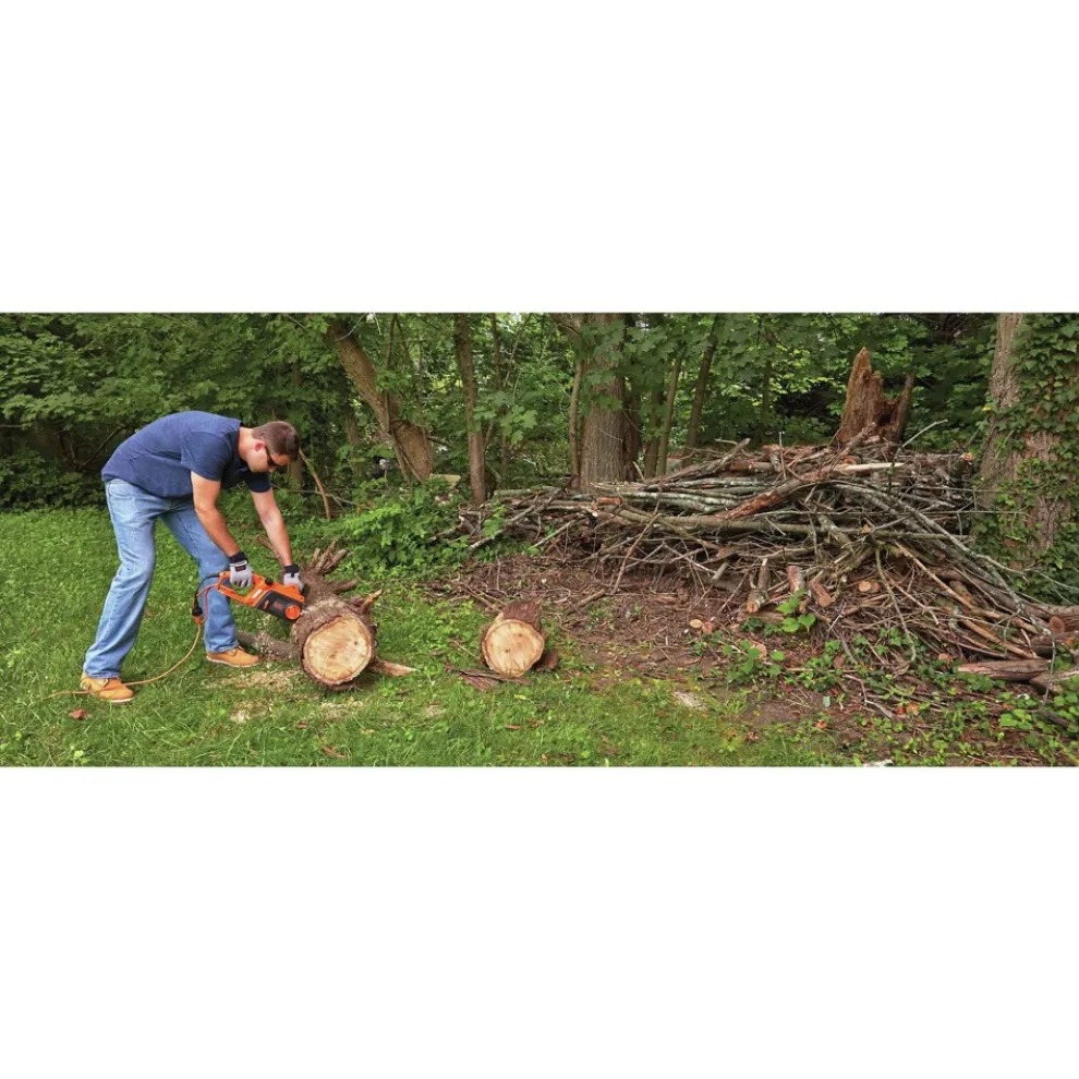 Power through branches and logs with this 16 in. corded chainsaw. Tool-free chain tensioning offers fast, easy adjustments. A 16 in., low-kickback bar and chain enables smooth, fast cuts.