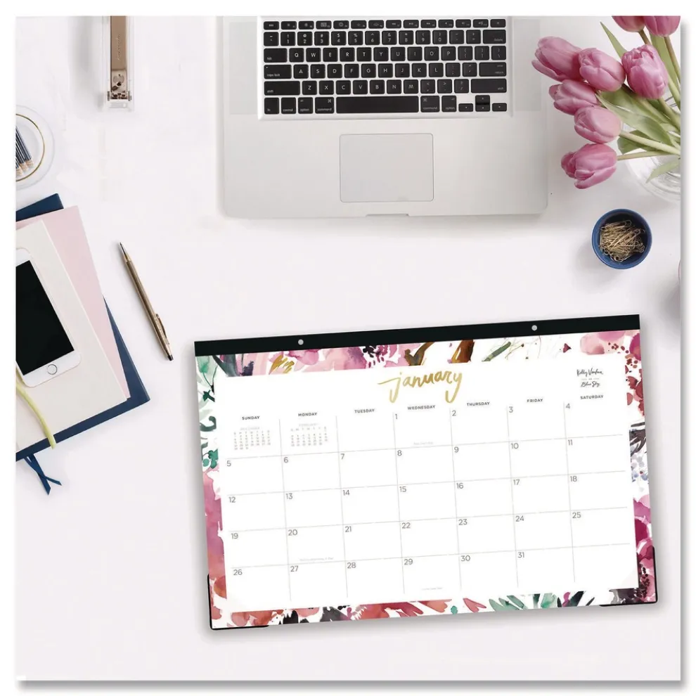 Blue Sky 149057 17 in. x 11 in. 12-Month (Jan to Dec): 2026 Kelly Ventura Magenta Bloom Desk Pad Calendar – Floral Artwork, White/Multicolor Sheets