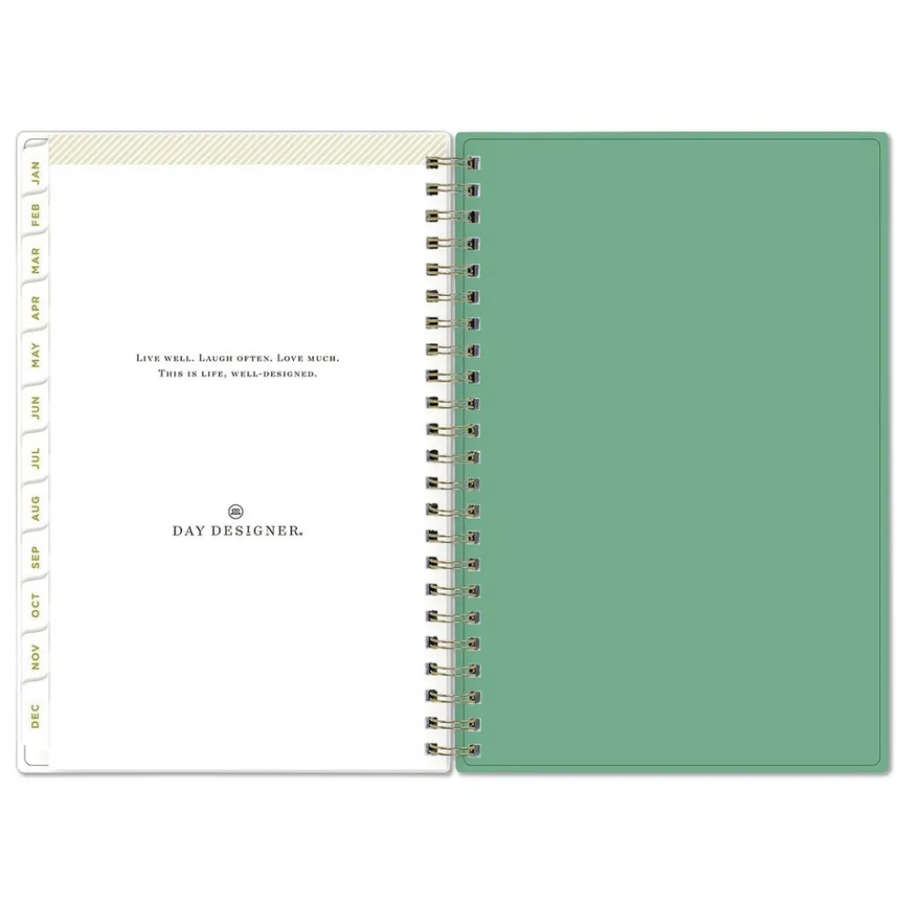 Day Designer planners offer both functionality and modern beauty to help you stay on track and focused throughout your busy days. Includes introductory letter from Whitney English, worksheets for personal goals and intentions, dated calendars, yearly overviews, holidays and notes. This smart, stylish, unique planning system features the Peyton floral cover with gold foil detail. Weekly calendar view per two-page spread contains space for daily schedule, to-do list, top three goals for the week. Monthly calendar view per two-page spread offers a visual overview of your time. A clear CYO (create your own) cover pocket allows you to keep track of loose notes, details and papers in the front of your planner. Twin-wire binding and durable, coated tabs offer easy page turning and access to past, present and future months. Stay on track throughout the year with this planner, dated January – December. The Day Designer collection of beautiful and functional planning products and accessories inspire busy individuals to live a well-designed life.